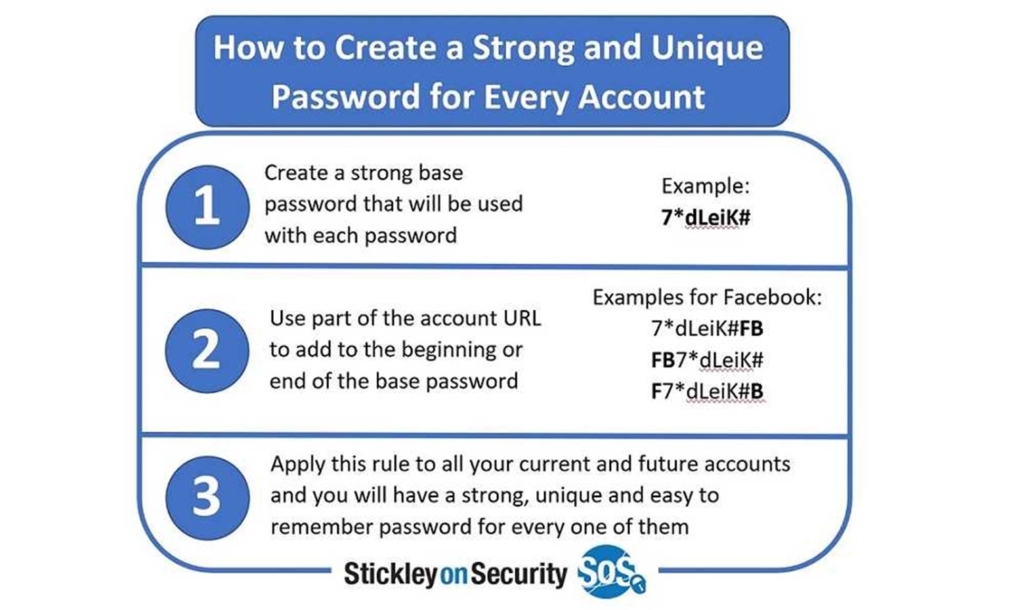 - Tip: Be sure to always use strong and unique passwords for every single online account.